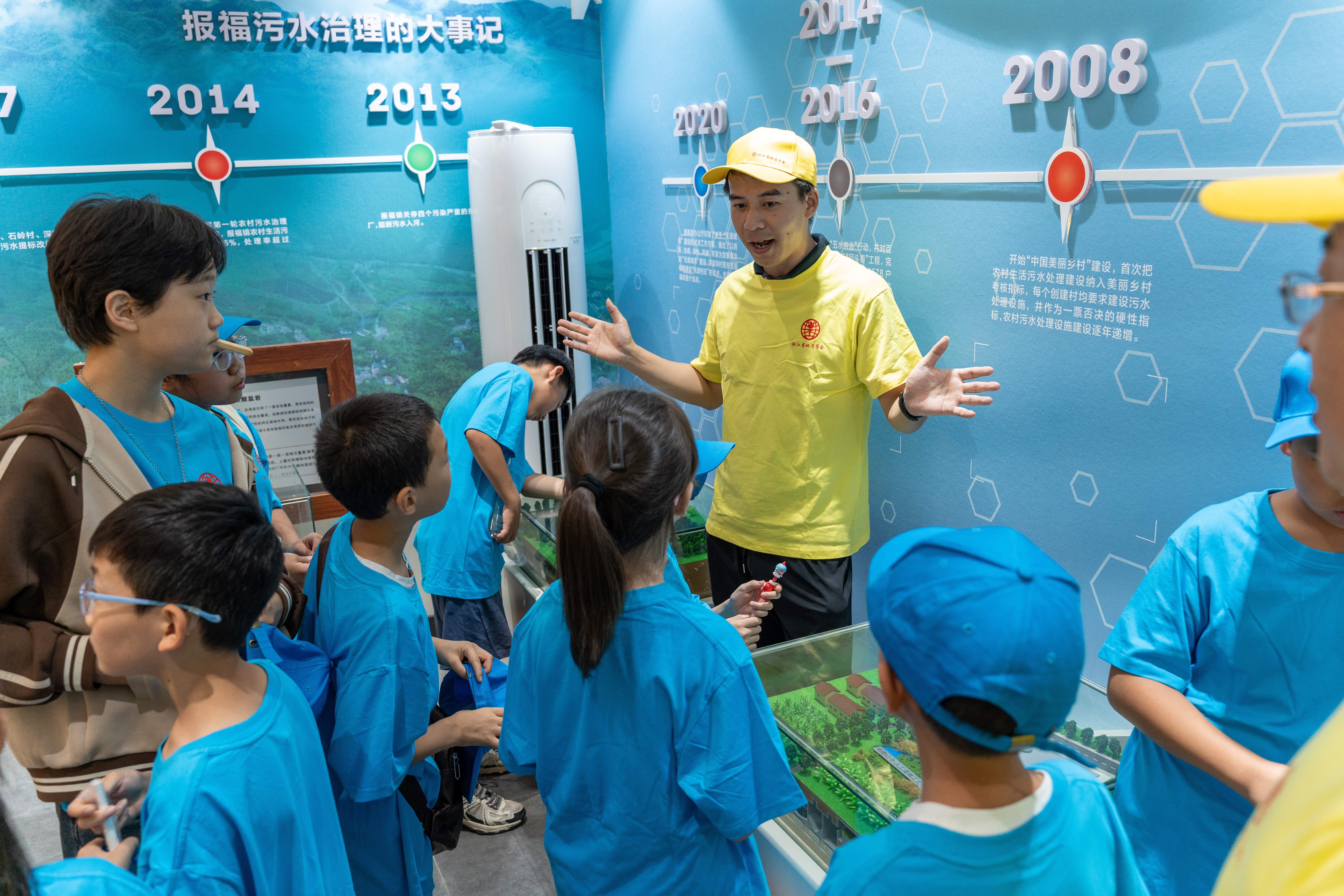 在景溪村生态文明展示馆,孩子们通过互动展陈了解竹林碳汇、水土保持、污染治理等生态智慧。