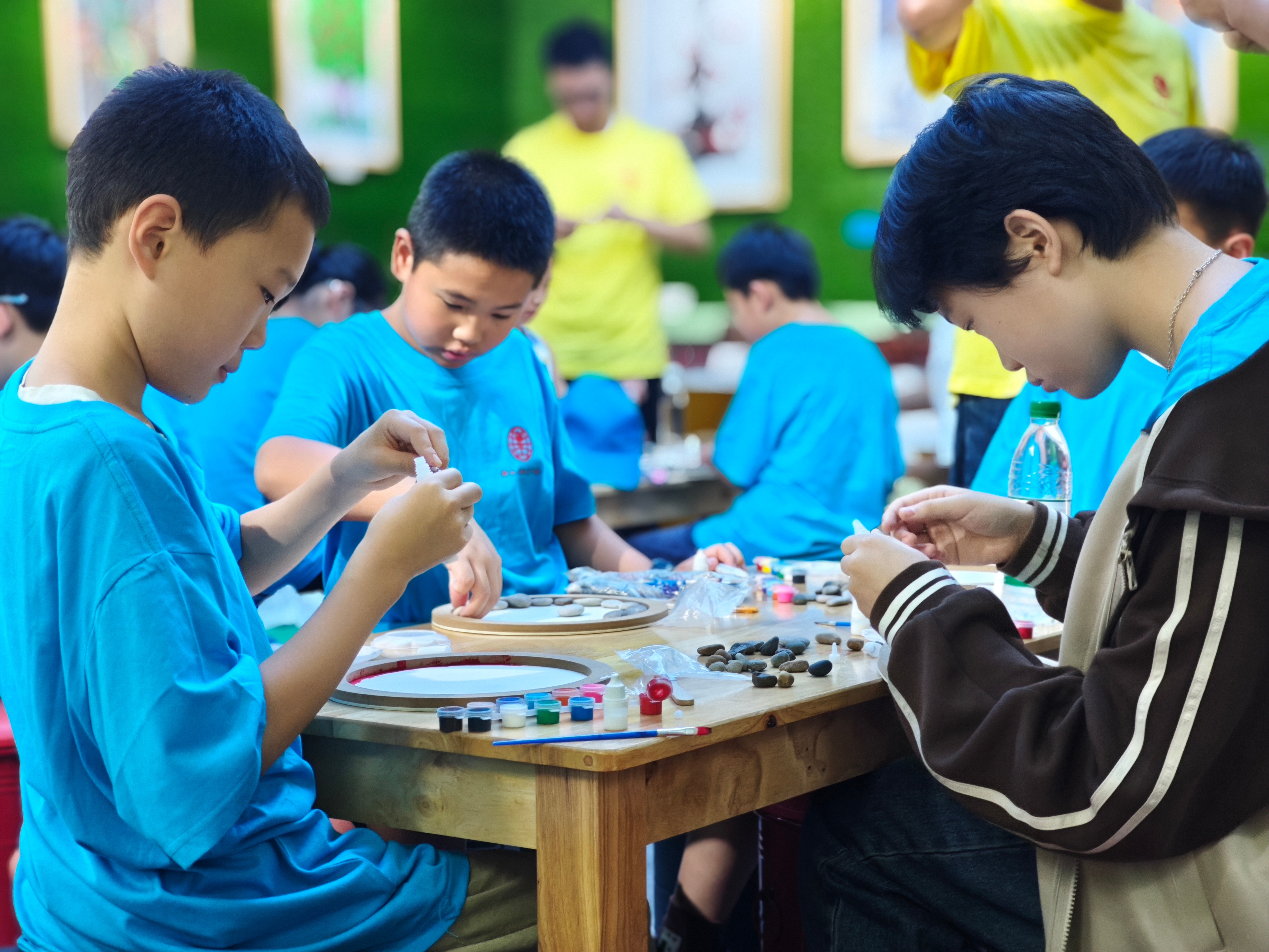 午间DIY石头画环节,亲子家庭以溪石为画布,共绘青山碧水、竹林熊猫等生态画卷,一件件作品凝聚着对绿色家园的纯真想象。