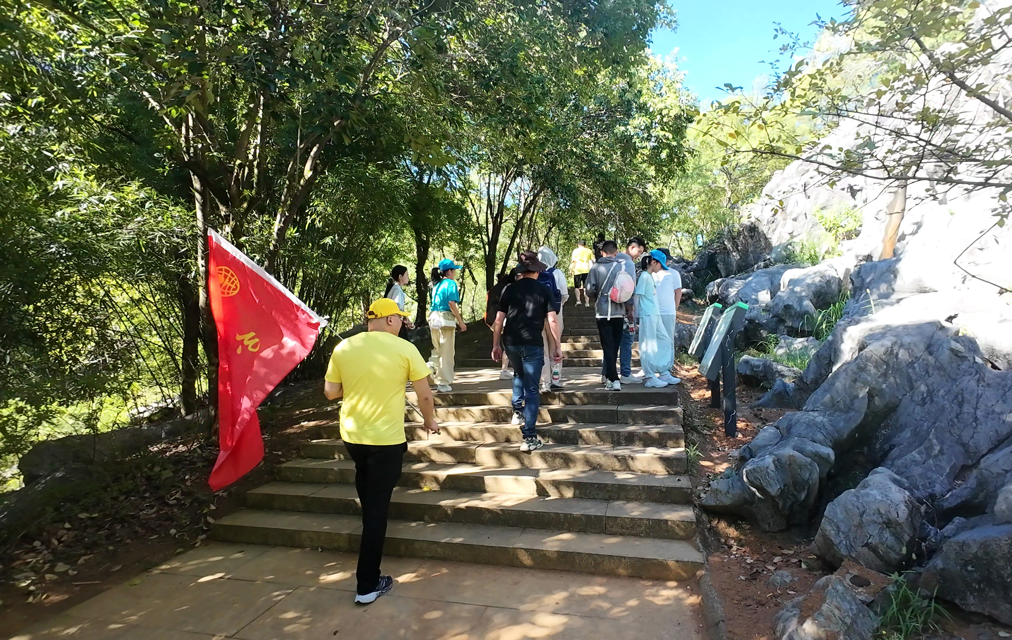 第二天,营员们来到三衢山,实地探索“江南石林”的独特地貌。作为典型的喀斯特地貌区域,三衢山的嶙峋石林、幽深石巷成为营员们的 “天然地质课堂”。在指导老师的引领下,营员们边走边学,观察岩石纹理,辨认地质特征,了解了石林的形成过程与岩石类型。大家在徒步中探寻自然奥秘,有的蹲下身细细触摸岩石表面,有的结伴讨论地貌特点,既增长了知识,也培养了团队合作精神。
