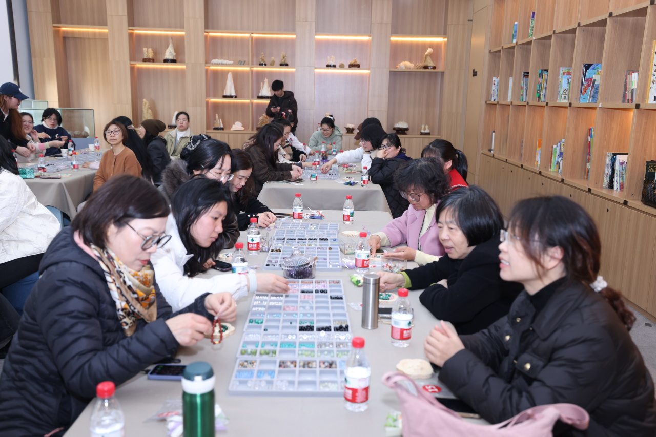 春风漾芳华,巾帼绽光彩。今年3月8日是第116个“三八”国际劳动妇女节,当天下午,由浙江省地质学会地学女科技工作者工作委员会、浙江省地质学会地质文化专业委员会、浙江一地地质文化有限公司(浙江地质科创园地质博物馆)联合举办的“串珠连心”水晶串珠手作主题活动,在浙江地质科创园地质博物馆温馨启幕。29名浙江省地质学会女会员受邀共赴春日之约,在地质科普与手工创作中,定格美好、悦纳自我,度过了一个别样而温馨的节日。
